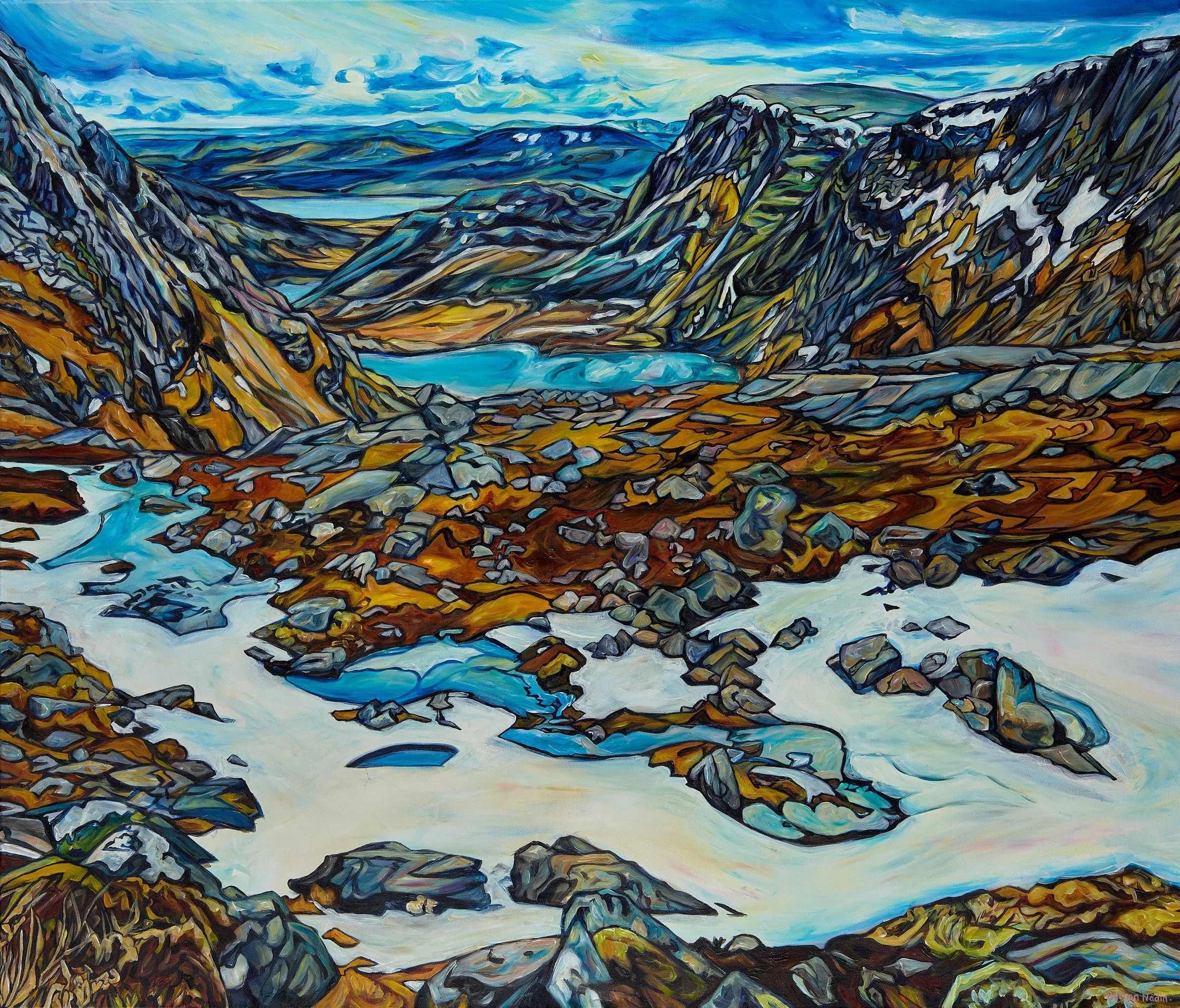 This painting is based on a photo I took while out running with friends. We linked five munros and many snow patches which made for a great day out! Until I realised I had forgotten my van keys and one of us had to hitch hike back to the car…